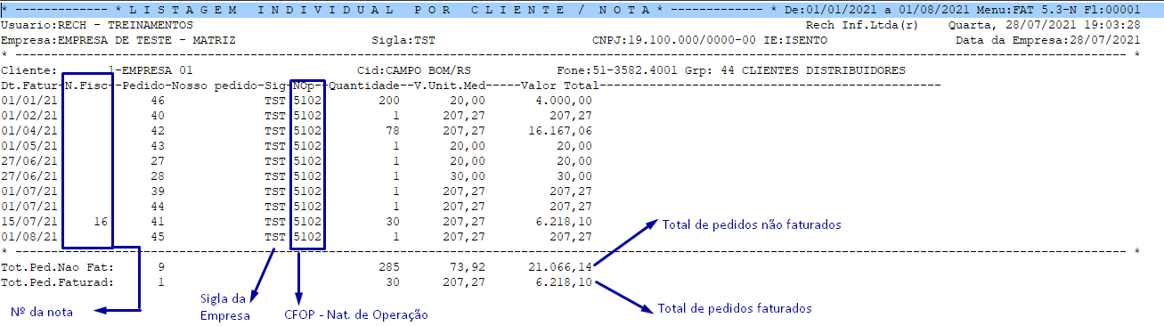 Listagem Individual por Cliente/Nota