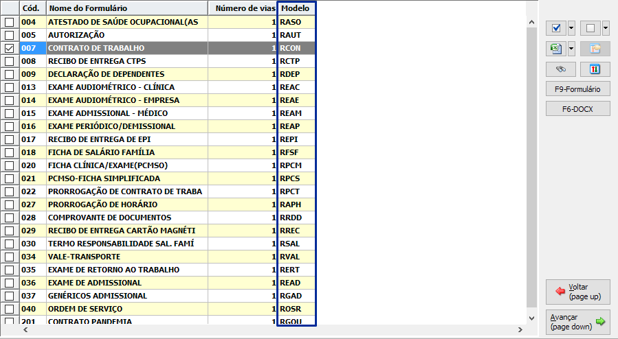 - Cada tipo de documento tem o seu prefixo (modelo ao qual pertence), exemplo os admissionais, menu FPA 5.2-C.