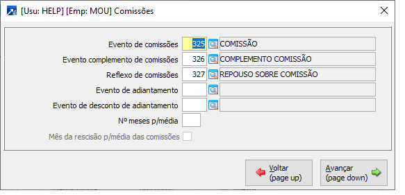 Exemplo do evento de comissão, cadastrado no menu FPA 1.7-I.