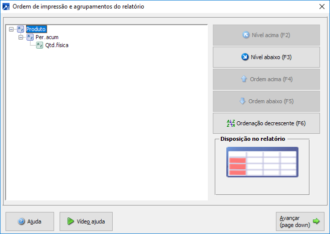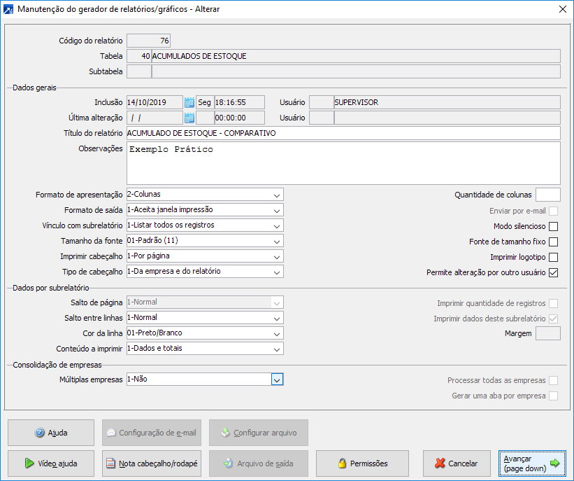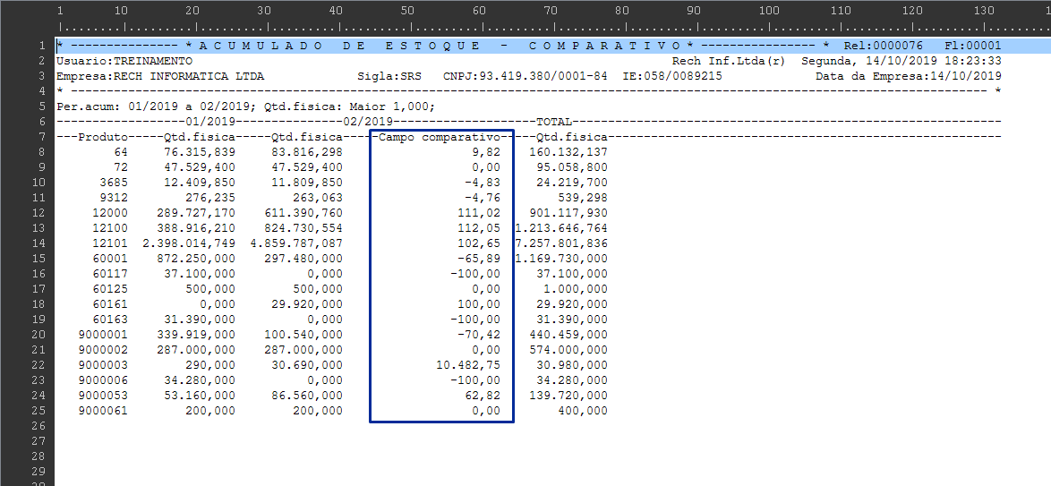 Exemplo de relatório utilizando a função de comparação entre colunas.