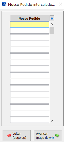 Abre tela para intercalar numerações do campo "nosso pedido".