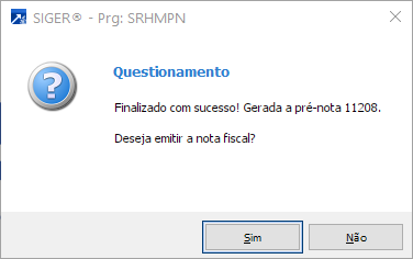 Caso deseje emitir a nota fiscal já neste momento, clique em <Sim>