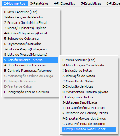 Emitindo Retorno do Beneficiamento através do menu 2.9-H
