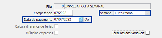 FPA 3.2-C, utilizado para calcular a folha, sendo necessário informar a semana que deseja calcular e a data de pagamento referente a semana.