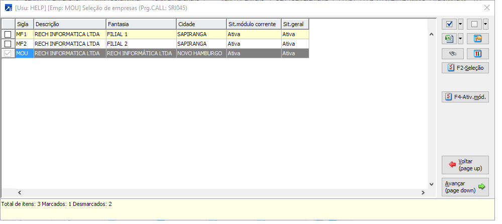 Localizar texto nas colunas exibidas da seleção efetuada. Também pode ser acionado pelo atalho CTRL+L.