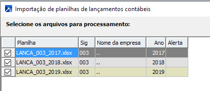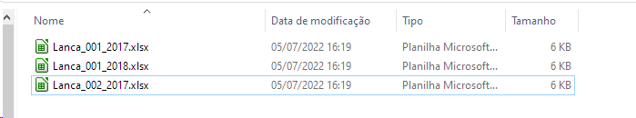 Para importar os arquivos abaixo, seria utilizada a máscara: Lanca_%emp%_%ano%.xls