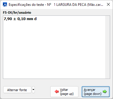 Acesso direto à janela de digitação da Especificação do elemento.