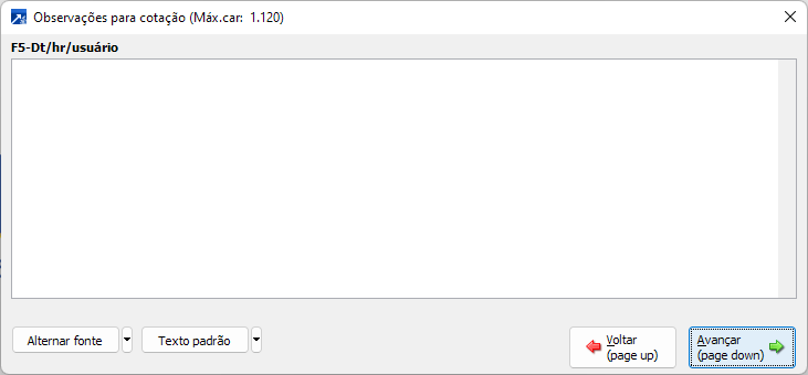 Este botão aciona uma janela onde pode ser digitado texto livremente. Estas observações serão levadas, posteriormente, para as observações do item da ordem de compra.