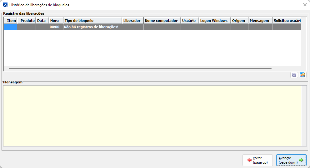 Este botão aciona uma janela onde são exibidas todas as autorizações de desbloqueio que foram concedidas para a cotação.