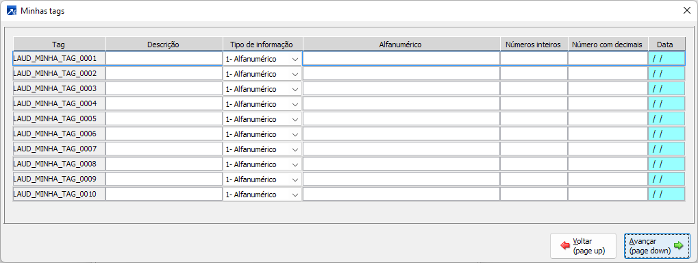 Permite criação de campos personalizados para imprimir em formulario de laudo em DOCX.