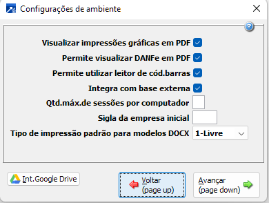 Configurações referente ao ambiente do usuário.