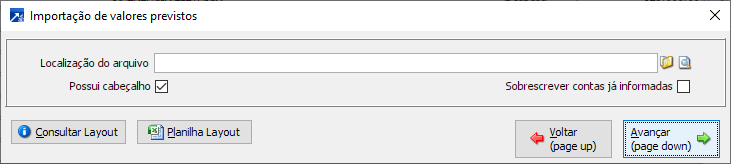 Verificar se deve ser marcado o campo "Sobrescrever contas já informadas", se marcar as contas já informadas e que as mesmas estejam no arquivo importado, serão atualizadas, se desmarcado mantém os valores previstos atuais, ignorando os dados a importar.