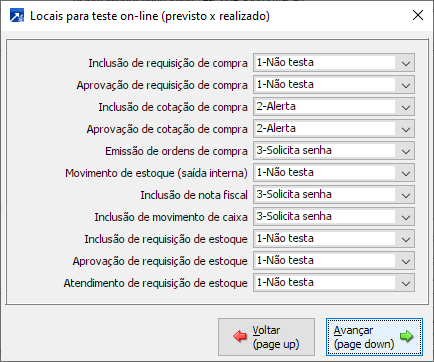 Este campo define o período para considerar os saldos anteriores, este campo está relacionado diretamente ao campo anterior (Saldos para teste on-line), será habilitado somente quando selecionado as opções 2, 3 ou 4. Opções disponíveis: