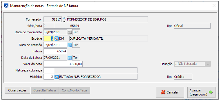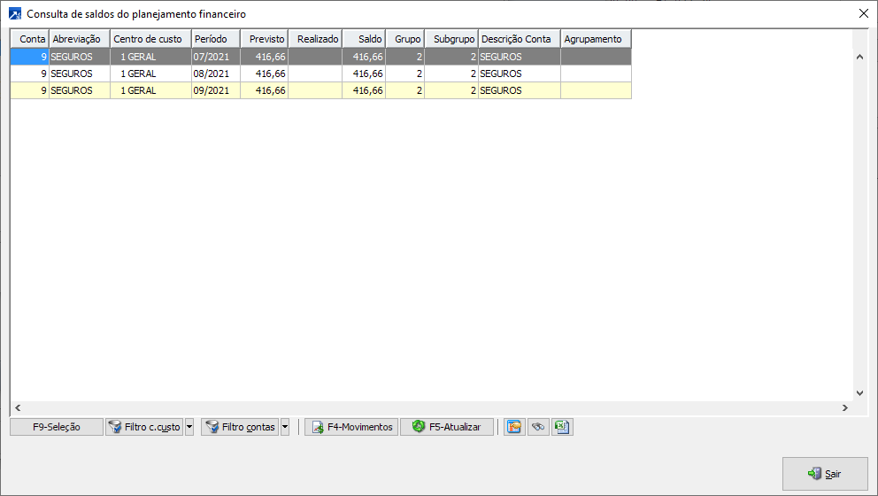 Neste exemplo, o lançamento de nota no mês 09/2021, será somado ao período 09/2021 os saldos dos períodos 07/2021 e 08/2021, considerando somente saldo positivo.