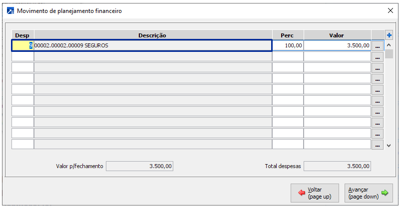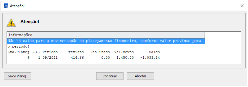 Neste exemplo, informado o número de meses igual a 1 (um), o lançamento de nota no mês 09/2021, será somado ao período 09/2021 o saldo do período 08/2021, considerando somente saldo positivo.