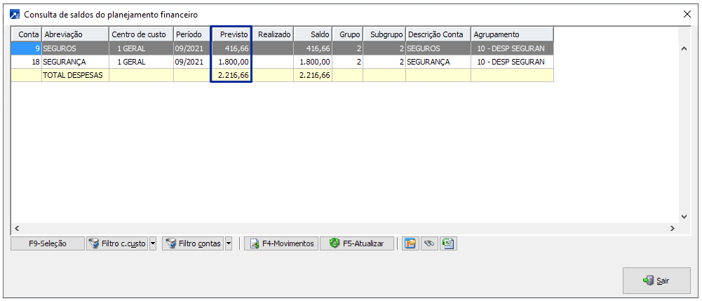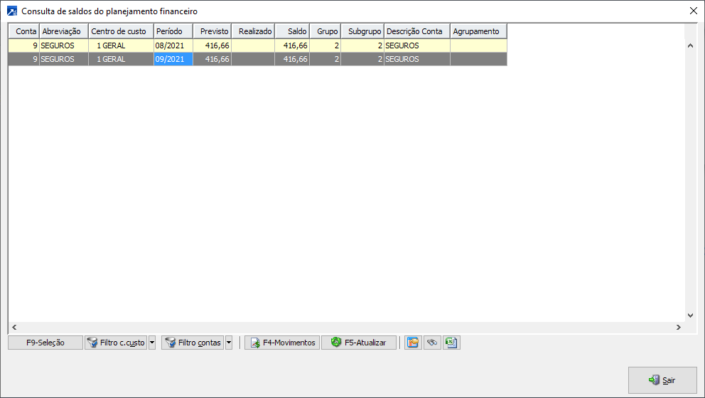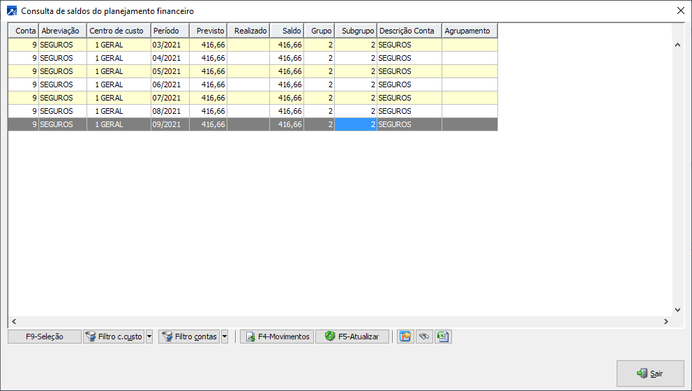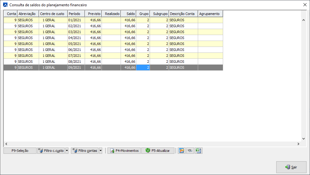 Neste exemplo, o lançamento de nota no mês 09/2021, será somado ao período 09/2021 os saldos dos períodos 01/2021 a 08/2021, considerando somente saldo positivo.