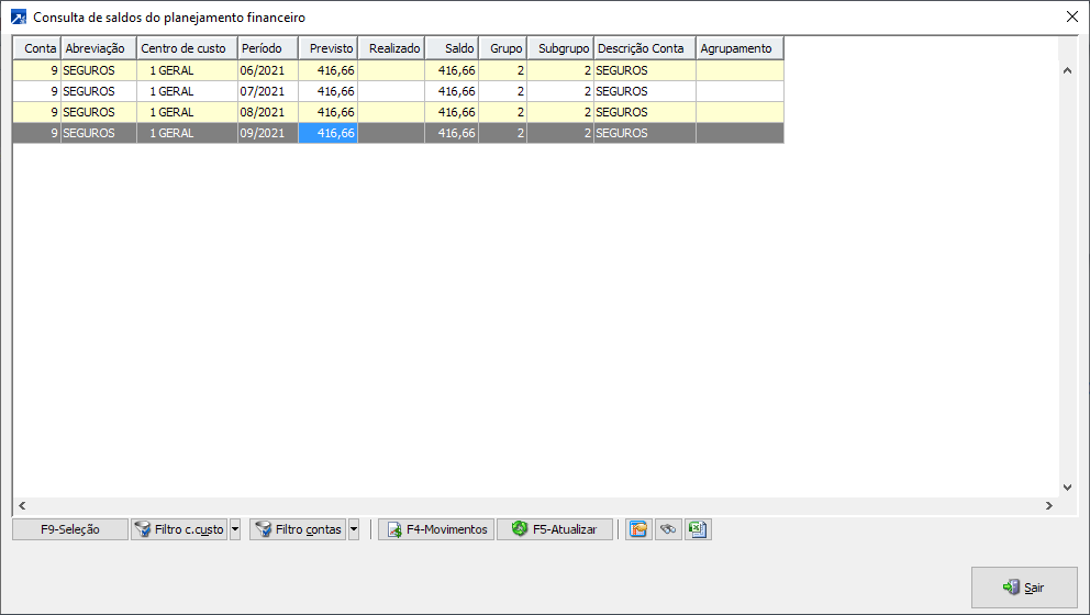 Neste exemplo, o lançamento de nota no mês 09/2021, será somado ao período 09/2021 os saldos dos períodos 06/2021, 07/2021 e 08/2021, considerando somente saldo positivo.