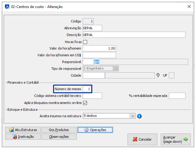5-NN meses: Considera NN meses anteriores, sendo NN o número de meses que deve ser informado no campo "Número de meses".