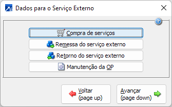 Se desmarcado, a ordem de compra de serviço externo é gerada conforme o parâmetro "Faz emissão de OC".