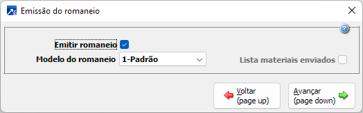 2-Romaneio: Indica para o SIGER® que o documento de remessa padrão a ser gerado para envio dos materiais ao serviço externo é Romaneio.