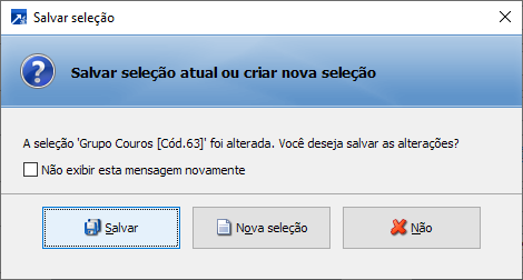 1-Perguntar: sempre irá abrir a mensagem ao fazer alguma alteração da seleção e avançar (mensagem abaixo).