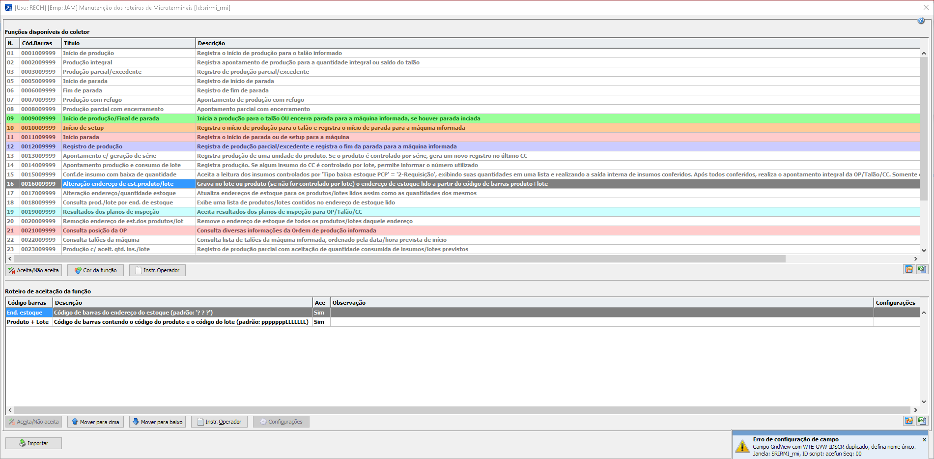 Código de barras com o produto + lote a ter o endereço de estoque alterado. O código de barras aceito nesse campo possui 7 dígitos para o produto e 7 dígitos para o lote.