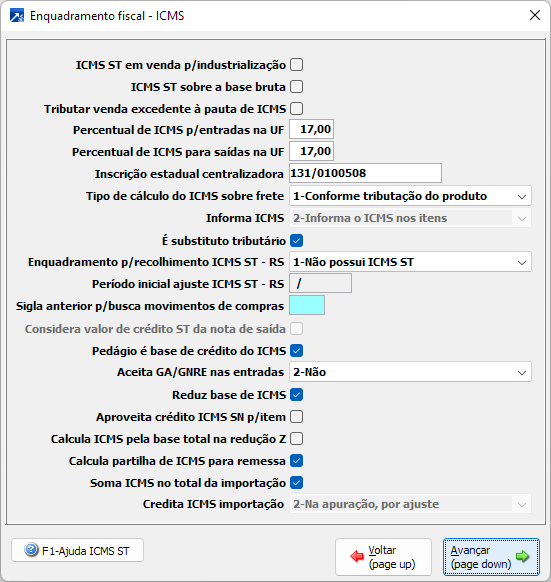 Parâmetros de empresa - Enquadramento fiscal - ICMS