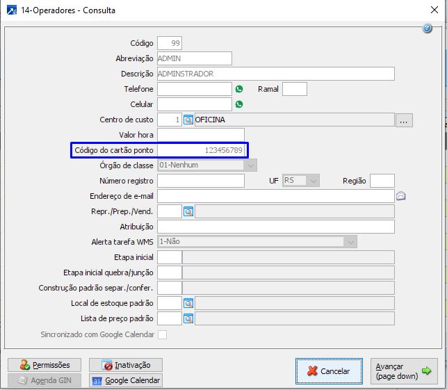 Inserir o código do operador, que está registrado no operador.+ Saiba mais