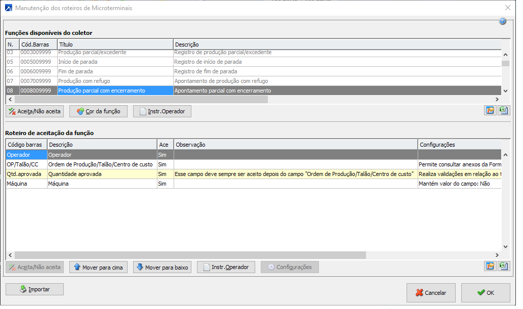 '1-Sim': Aceita o código de barras do recurso ativo do tipo máquina.