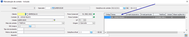 Desta forma, então, ao criar um contato contra um cadastro de clientes existente no SIGER® irá herdar este campo do cadastro.