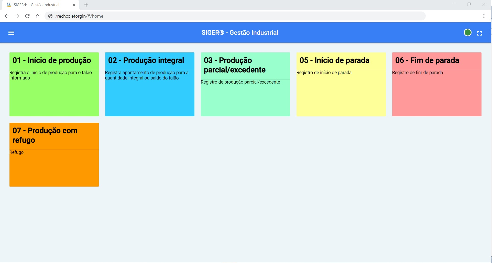 O novo coletor permite realizar registros de produção e parada a partir de qualquer dispositivo que possua o navegador Chrome atualizado e um leitor de código de barras. Esses registros são validados e integrados instantaneamente no SIGER®.