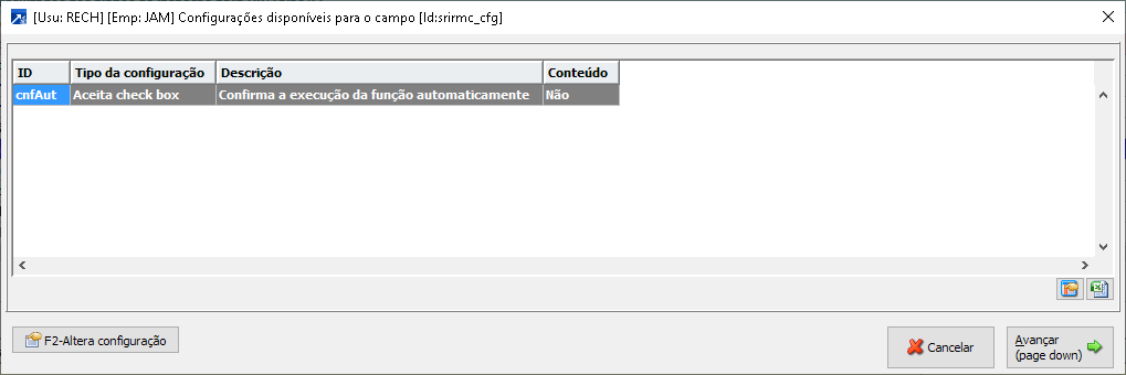'Confirma a execução da função automaticamente': Se estiver configurado como 'Sim', ao ler toda a quantidade de todos os insumos da OP, vai confirmar a execução da função automaticamente.