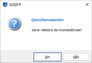 Caso não existam movimentos pendentes, o SIGER® vai exibir mensagem informando que as verificações foram efetuadas e que não foram encontradas inconsistências.