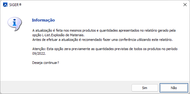 A quantidade prevista pode ser atualizada pelas seguintes opções: