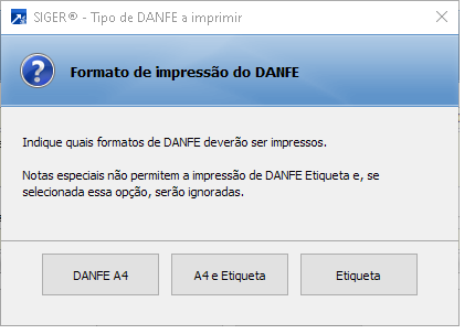 Quando realizada a cópia de uma nota cuja série esteja configurada para emitir um DANFE Simplificado/Etiqueta (+ Saiba mais), será possível escolher qual o tipo de documento a ser gerado.