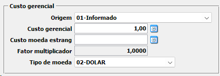 03-Igual ao Custo de Aquisição: Irá replicar o custo de aquisição para o custo gerencial, não permite alterações manuais.