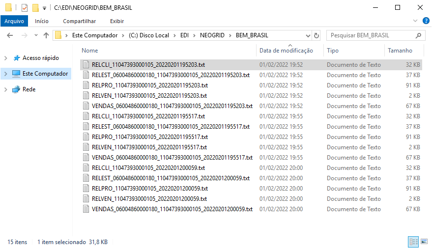 Ao avançar e confirmar na janela de configurações do EDI Bem Brasil Alimentos (Neogrid), no menu FTR 6.4-K, será abera a janela de "Gerenciamento do EDI", onde será possível iniciar a exportação (botão <F6-INICIAR EXPORTAÇÃO>).