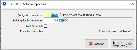 Envia todos clientes: Se marcado, envia todos os clientes, da empresa.