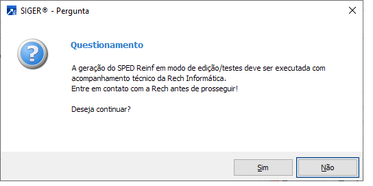 Opção criada para a fase inicial da empresa, que queira efetuar testes de envio e retorno dos arquivos REINF.