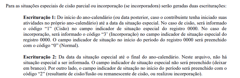 O que é uma situação especial, e como deve ser entregue as declarações ECD e ECF.