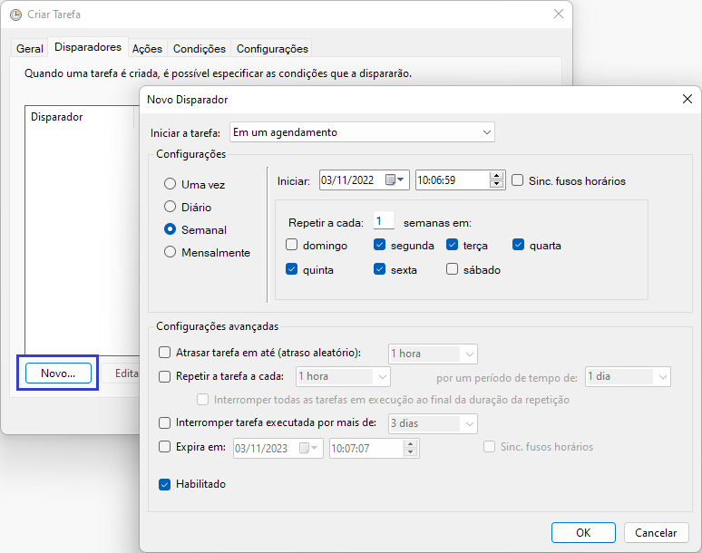 Configurando tarefa agendada no Windows a partir da linha de comando.