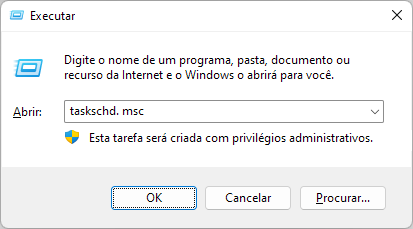 Pressione “Win+R” para abrir o Executar, digite taskschd.msc e clique em “OK” para abrir o Agendador de Tarefas.