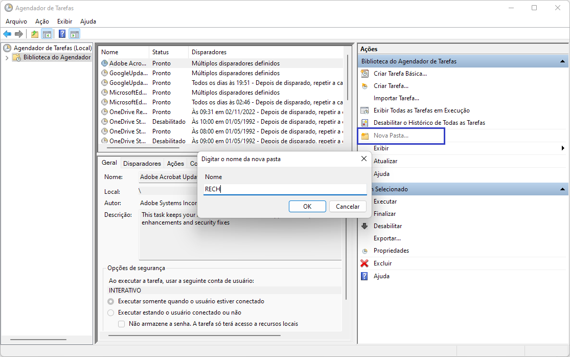Obs: Por ser no servidor da empresa é muito provável que já exista um diretório de tarefas agendadas chamado Rech.