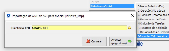 Pelo módulo RHU 7.8-I será indicado o caminho onde estão salvos os XMLs repassado pelos terceiros.
