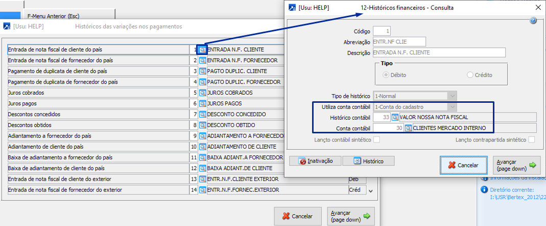 Para configurar as operações realizadas através de notas fiscais, serão indicados os históricos e contas nos CFOP’s normalmente utilizados pela empresa. Menu 1.3-M tabela 10, na segunda janela (após o primeiro “Avançar”).
