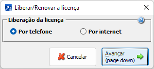 Liberação/renovação da licença por telefone ou por internet de forma manual.