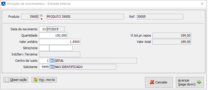 É necessário que a empresa do estoque esteja configurada para permitir vinculação manual de movimentos. Os movimentos são gravados com origem "01-Manutenção de movimentos".