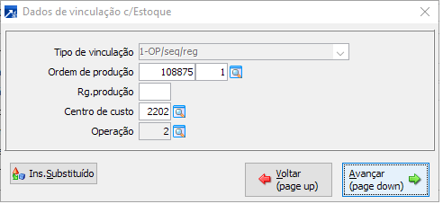 A vinculação com a OP ocorre pela informação do usuário na janela de Dados de Vinculação.