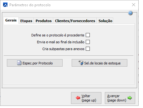 permite efetuar uma seleção dos locais de estoque que serão considerados para compor o saldo em estoque dos produtos vinculados ao protocolo.