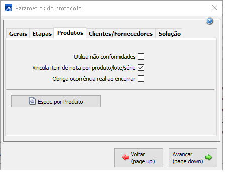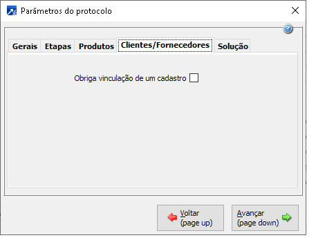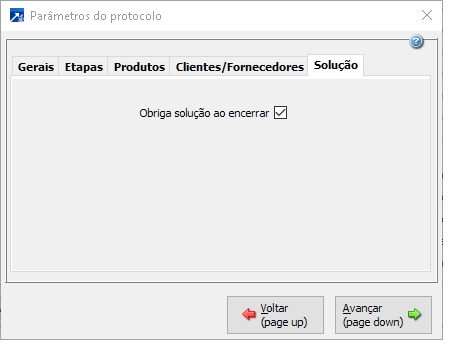 Configurações inerentes ao botão [Protocolos] dos parâmetros do telemarketing.
